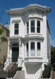 In San Francisco, the Stick/Eastlake style was primarily an ornamental style applied to the already well-established urban rowhouse prototype. Nearly identical in proportion to the bay-windowed Italianate, the San Francisco Stick/Eastlake style dwelling was usually two stories and the façade was two bays in width. The façade of the San Francisco Stick/Eastlake style rowhouse is typically dominated by a two-story, rectilinear bay window. The style is primarily distinguished by the enthusiastic application of flat strips of wood around windows and doors and elsewhere to express the underlying structural frame. The ornamental detailing is much more imaginative and non-naturalistic, incorporating so-called "Eastlake" millwork detailing such as sunburst-motif brackets, rosettes, florid vegetal motifs and even more excessive imagery. Most of the exterior detailing was obtained from local mills or ordered from catalogs. The roofline of the San Francisco Stick/Eastlake typically received a great deal of attention, with applied ornamental truss work and false gable roofs. San Francisco Stick/Eastlake style dwellings were constructed in San Francisco between roughly 1880 and 1890. Examples can be found throughout San Francisco, particularly older Victorian-era neighborhoods that escaped destruction in the 1906 Earthquake and Fire such as the Western Addition, the Mission, Pacific Heights, Eureka Valley and Noe Valley.