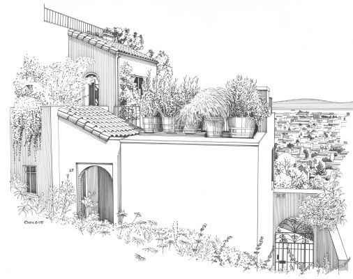 Clarendon Heights is a very desirable residential area on the north side of Twin Peaks, well known for its panoramic views, charming streets, and expensive homes. This building begins on Graystone and continues downslope to Villa, where the garages are located. Both streets are small, quiet, and picturesque. There is easy access from this location to both the downtown and the Peninsula. The easiest way to reach this flat is from Villa, through the iron gate, and up the steps at 72 Villa.